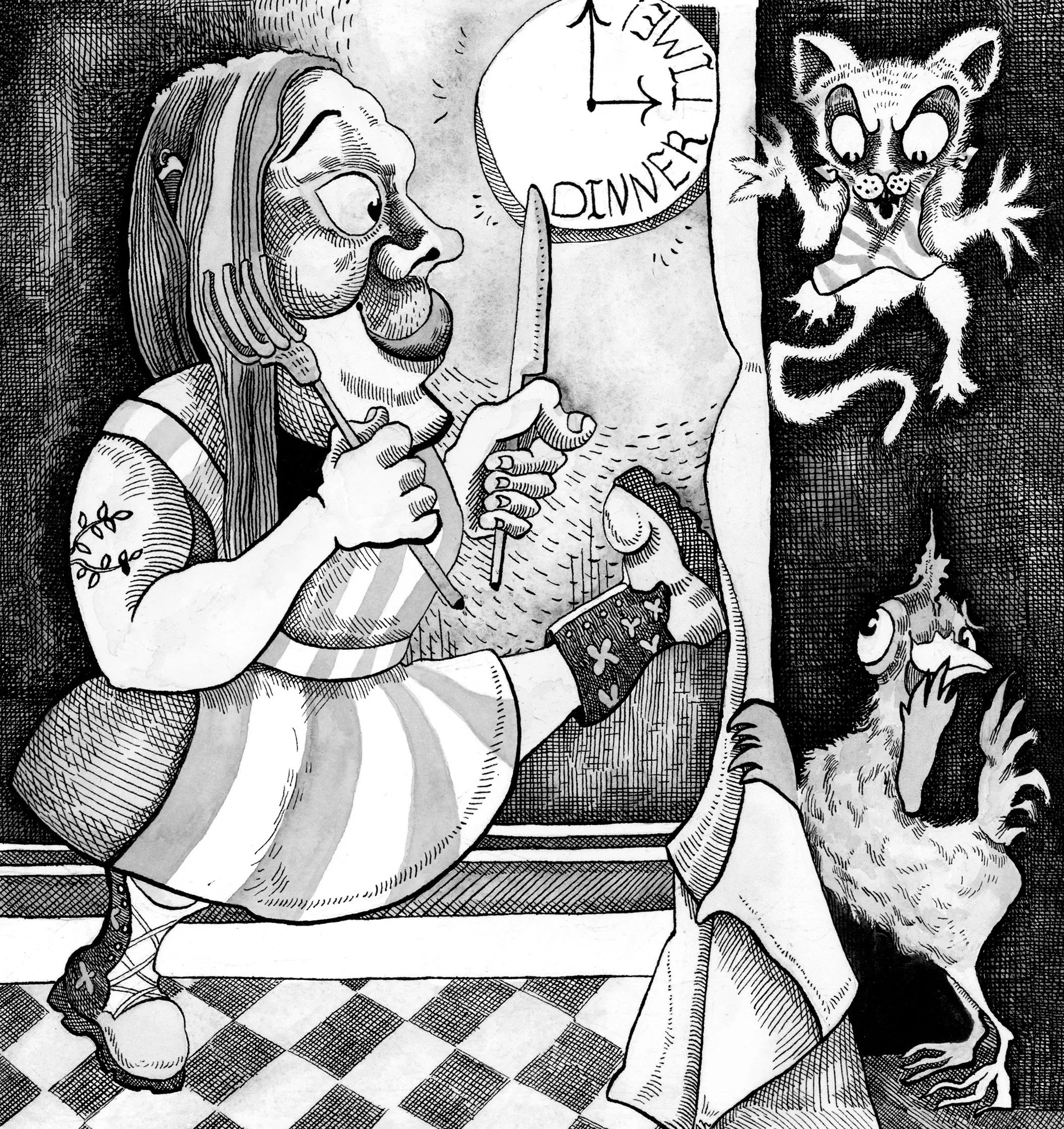 Dinner time! Spot illustration Say Cheese! The Wicked Child The Age of Serpents and Scorpions Between the trees The teddy stealer Mardi Gras invitation design Line drawings I had wings like a bat The three bears Pen and ink American Gods
